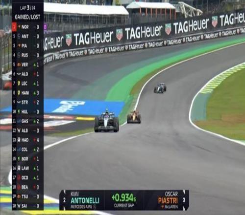 第18圈:安东内利追近领跑的诺里斯,阿隆索被维斯塔潘带开6秒,斯特罗尔也掉出了DRS区间;