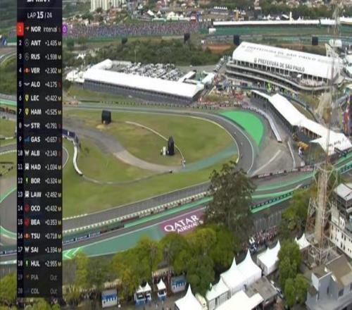 第21圈:诺里斯的软胎开始挣扎,安东内利追近至诺里斯身后0.48秒;